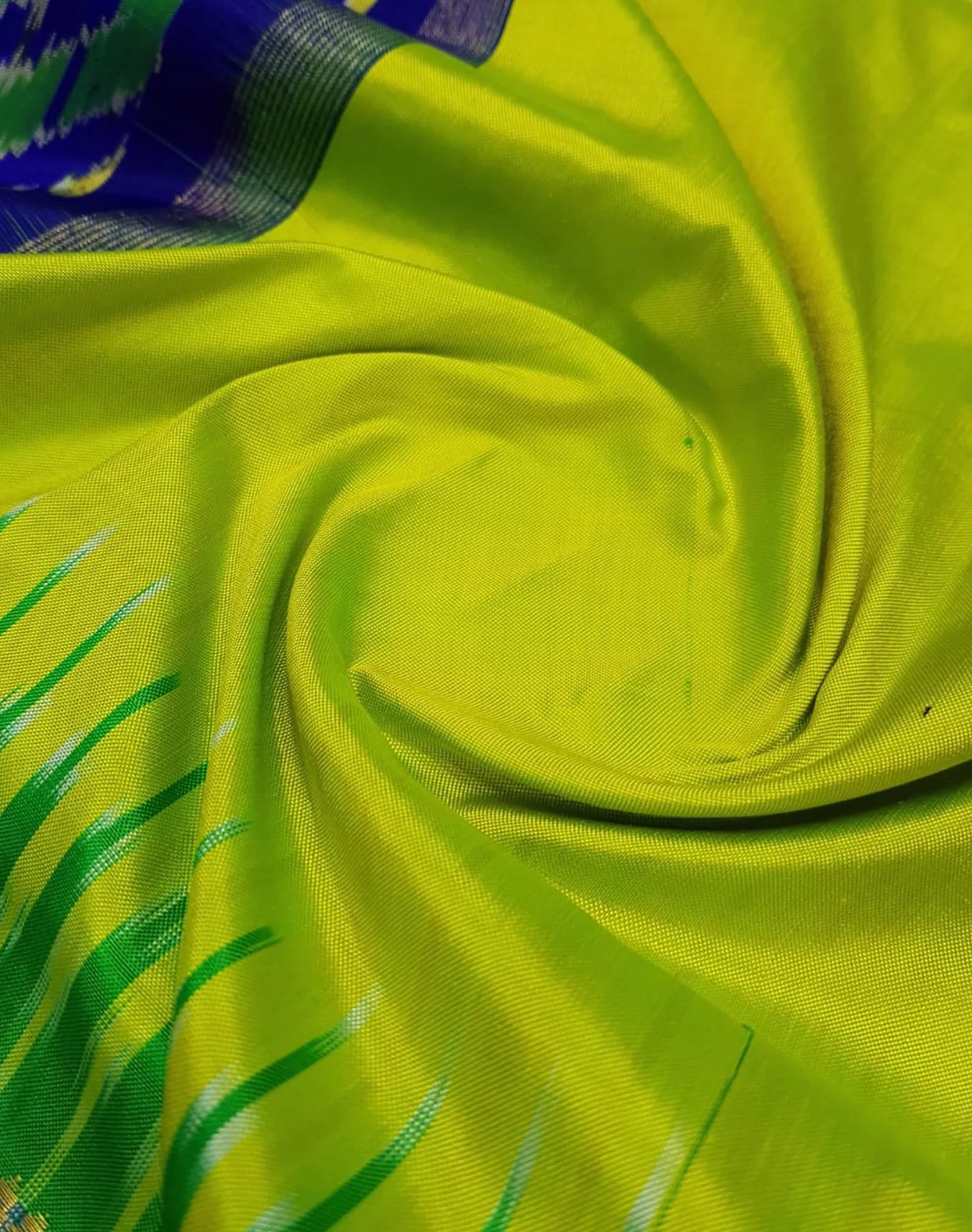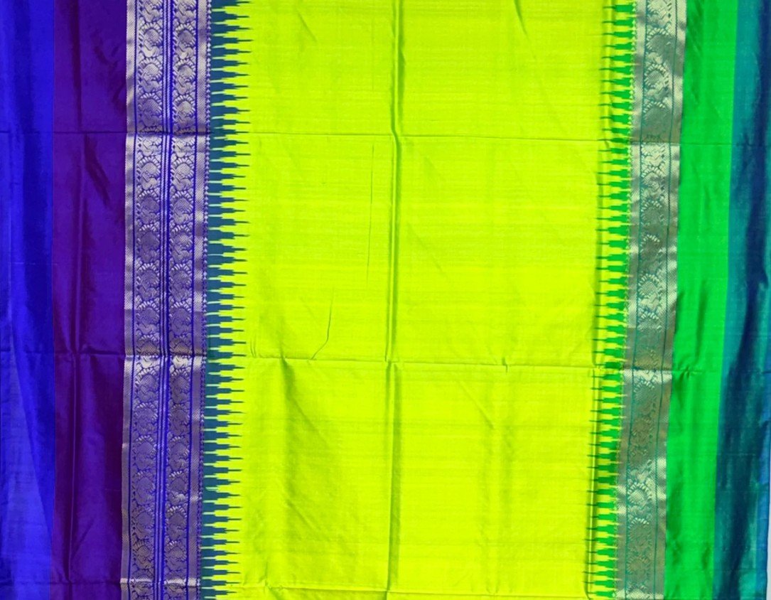 Lemon Green Silk Pochampally Ikkat Saree – Kanchipuram Border