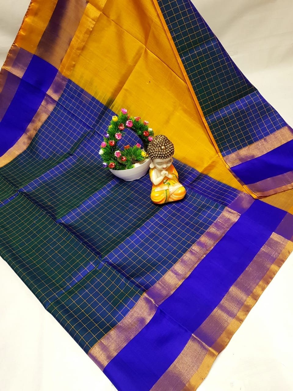 - Work: Checks Sea Blue Uppada Pattu Saree With Blue Border.